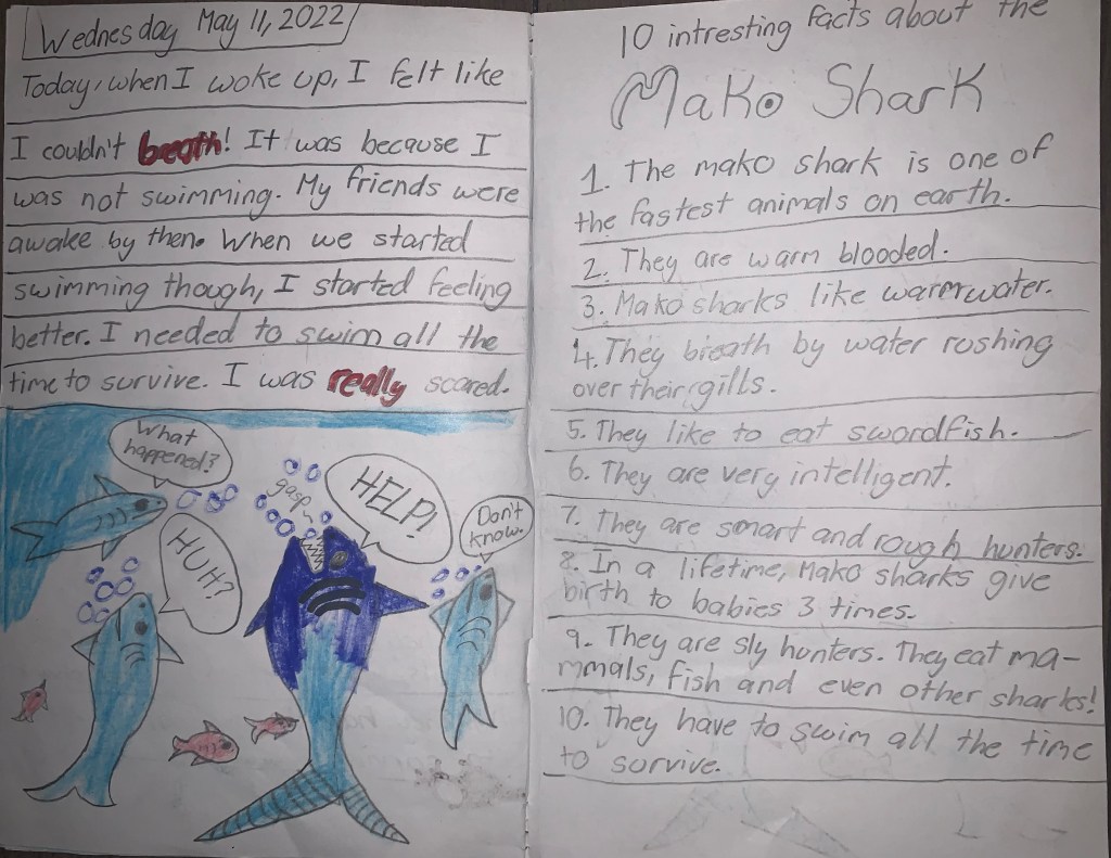 I made this in grade 2 and now I’m in grade 4, so that’s a pretty long time… I made this for a research project so I’m kind of surprised. Talks about facts of mako sharks.